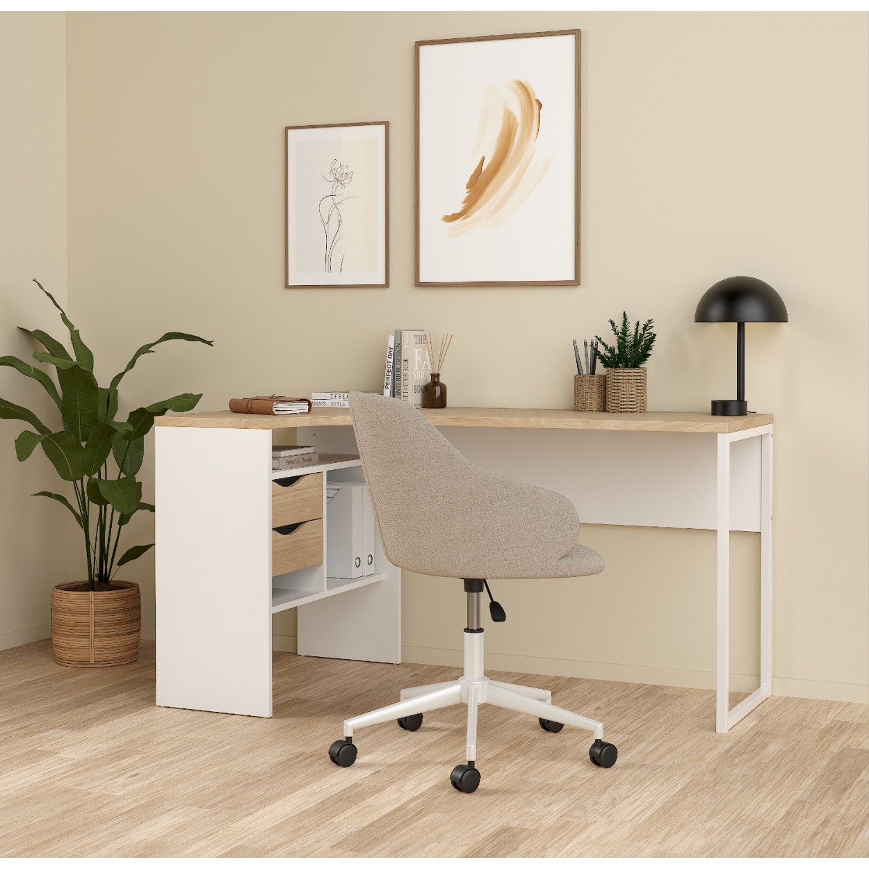 Function Plus γραφείο γωνιακό με δύο συρτάρια 145,1x81x76,8εκ. Λευκό / Jackson Hickory