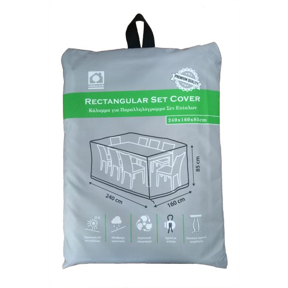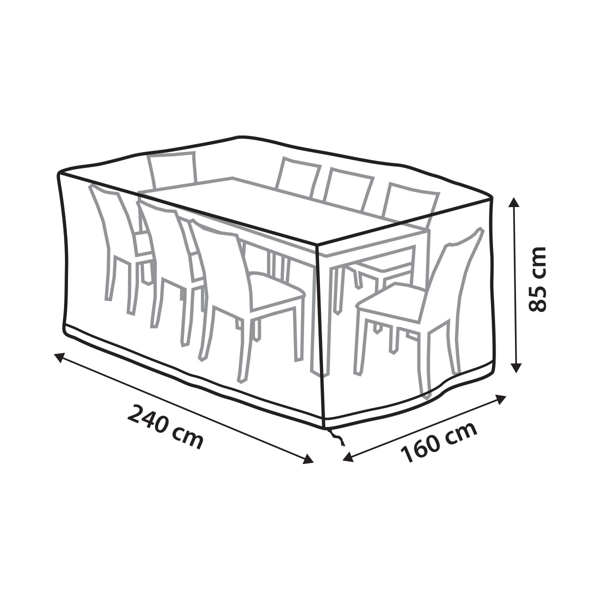 Υφασμάτινο κάλυμμα για παραλ/μο τραπέζι, διάστασης 240x160x85εκ., σε χρώμα γκρι. Κατασκευασμένο από υψηλής αντοχής πολυεστέρα 420D ύφασμα Oxford, προστατεύει από σκόνη, βροχή κ.α. Διαθέτει 4 σχοινιά και 1 κορδόνι περίσφιξης στο κάτω μέρος για κατάλληλη εφαρμογή. Με προστασία UV. Διαθέτει αεραγωγούς που εμποδίζουν την εξάπλωση της υγρασίας. Εύκολο καθάρισμα. Το προϊόν διατίθεται σε εύχρηστη θήκη αποθήκευσης.