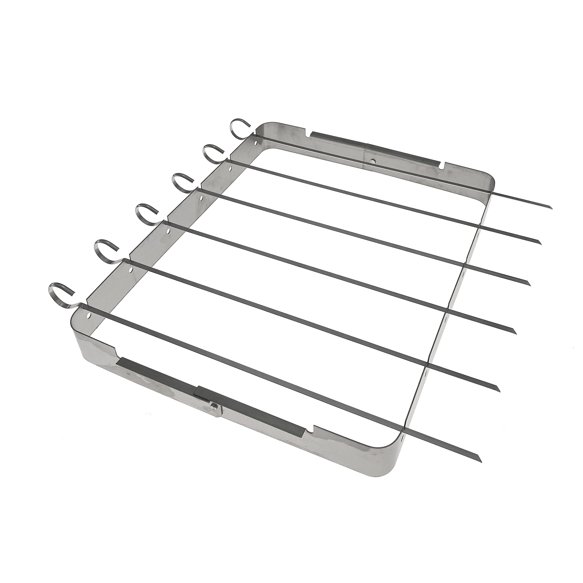 Ανοξείδωτη σπαστή βάση BBQ με 6 σουβλάκια, διάστασης 32x26x3.5εκ. Εξοικονομεί χώρο προσφέροντας παράλληλα ιδανική απόσταση από τη φωτιά για εύκολο γύρισμα και καλύτερο ψήσιμο των σουβλακιών. Εύκολος καθαρισμός, υψηλή ποιότητα και αντοχή.