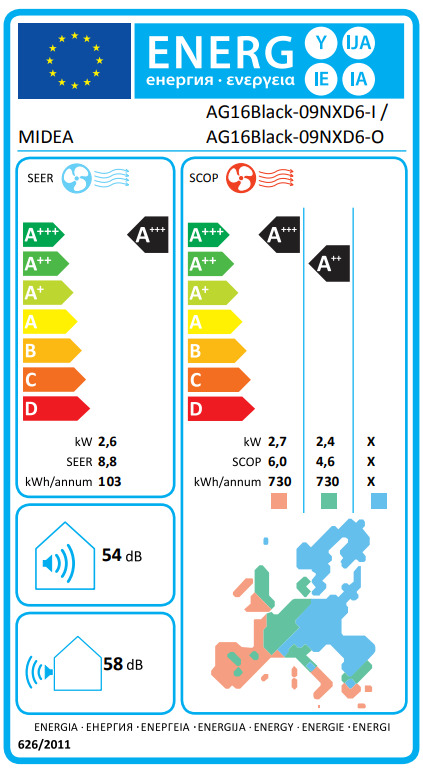 Το κλιματιστικό ανήκει στην ενεργειακή κλάση A+++, στην ψύξη και στην ενεργειακή κλάση A+++ στη θέρμανση (θερμή ζώνη). Η ενεργειακή κλάση μετριέται σε μια χρωματική κλίμακα επτά βαθμίδων από Α+++ έως D, με την κλάση Α+++ να είναι η αποδοτικότερη, ενώ αντίθετα η κλάση D, η ελάχιστα αποδοτική.